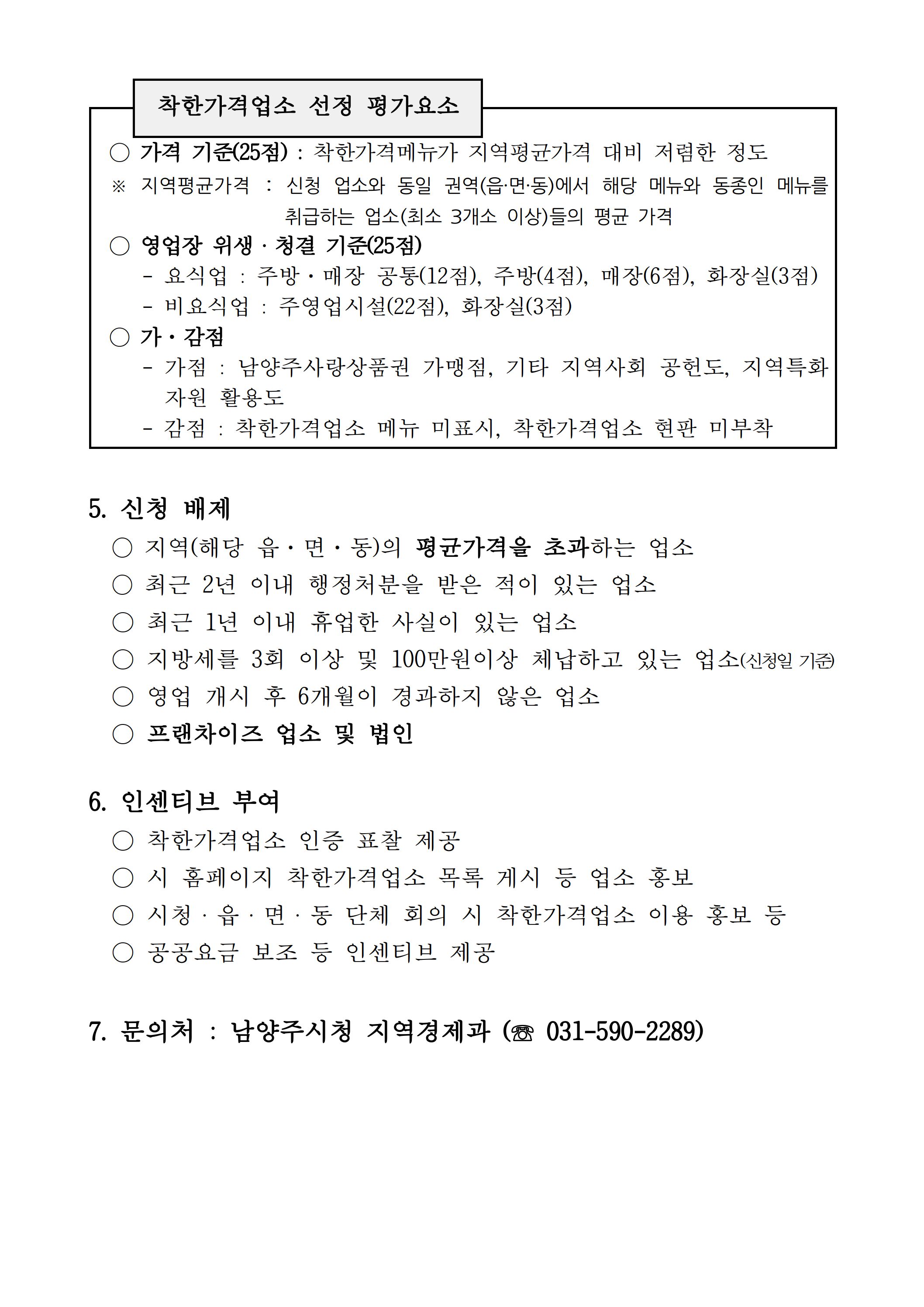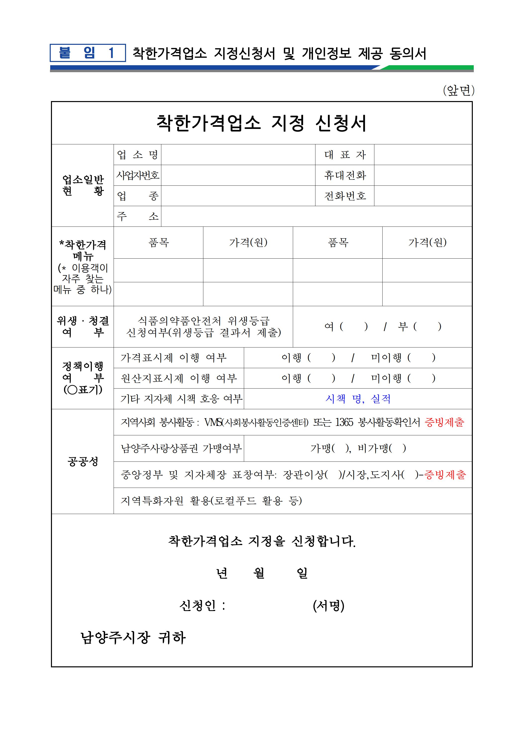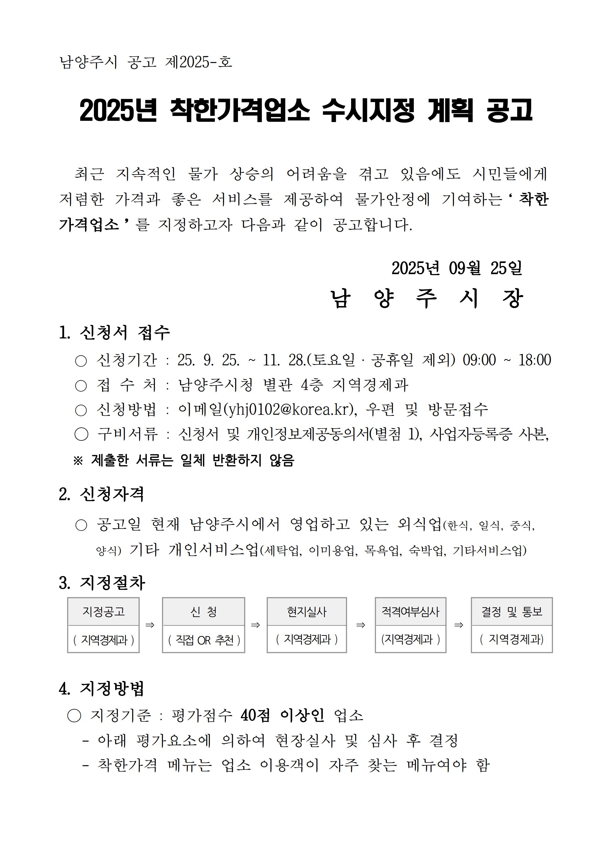 ◆ 경기도 남양주시 소상공인 착한가격업소 수시접수 및 지정 ◆
