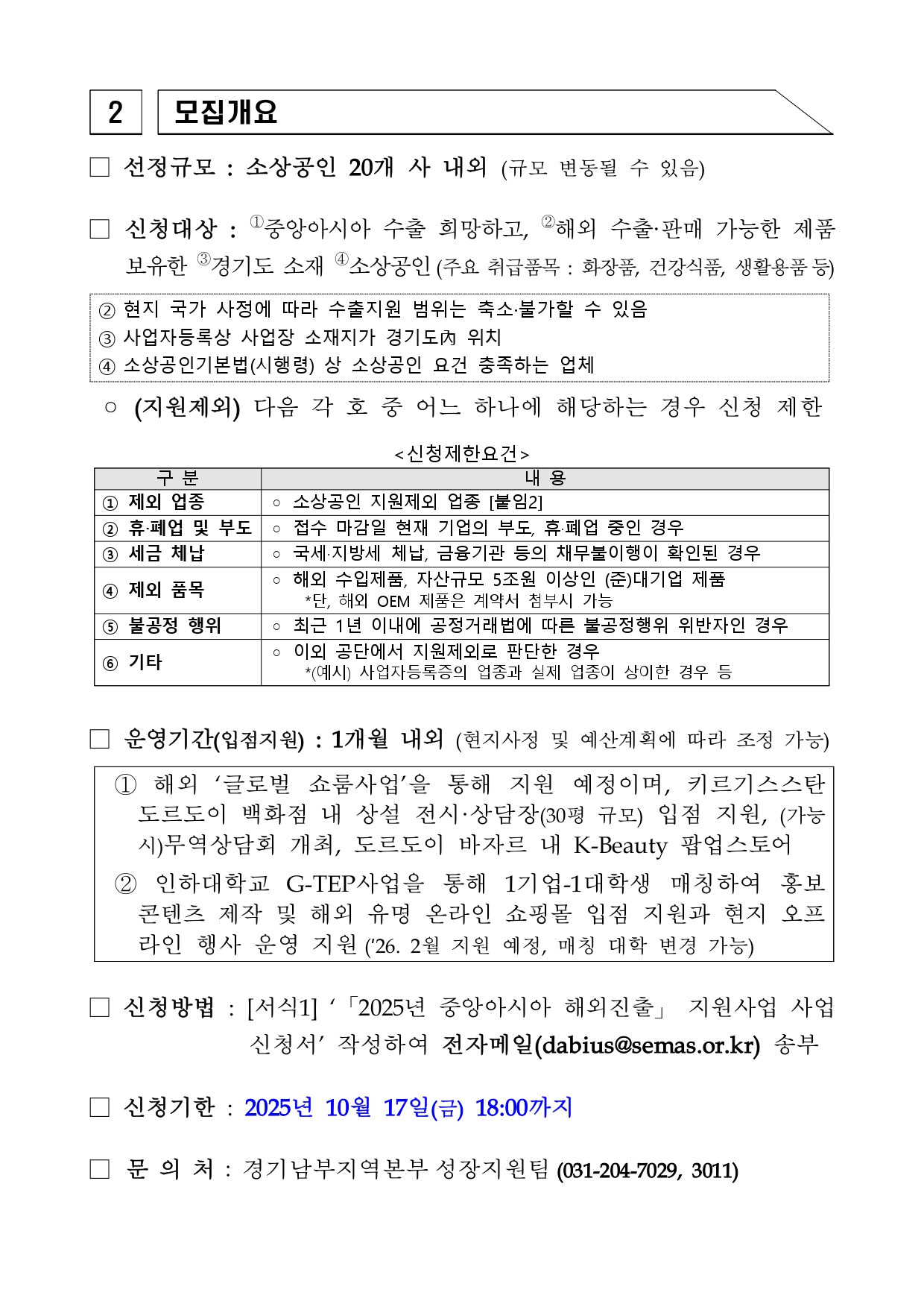 경기남부지역본부 성장지원팀 (031-204-7029, 3011)