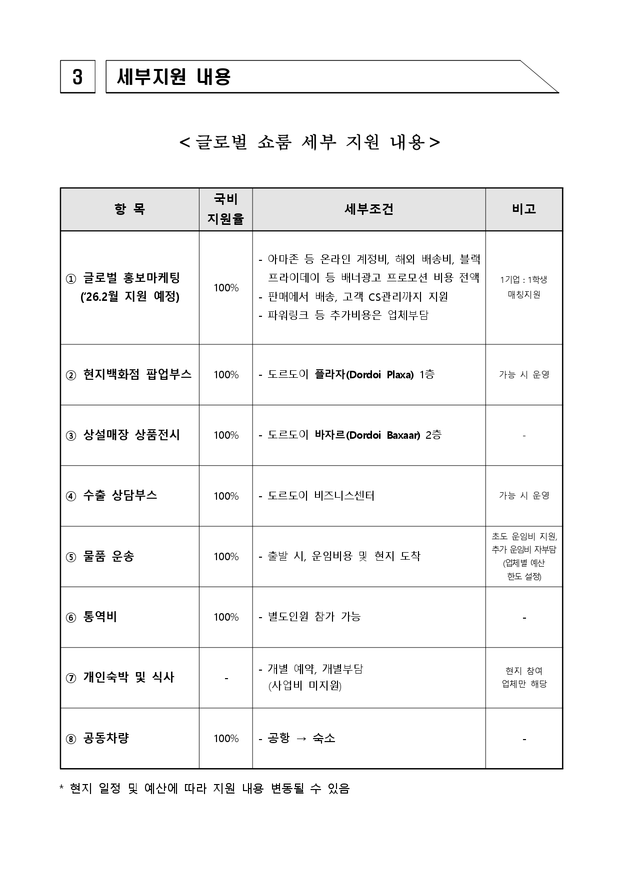 10월 말(또는 11월 초) 현지 판매·홍보 위한 전시관 입접 지원(1개월 내외)