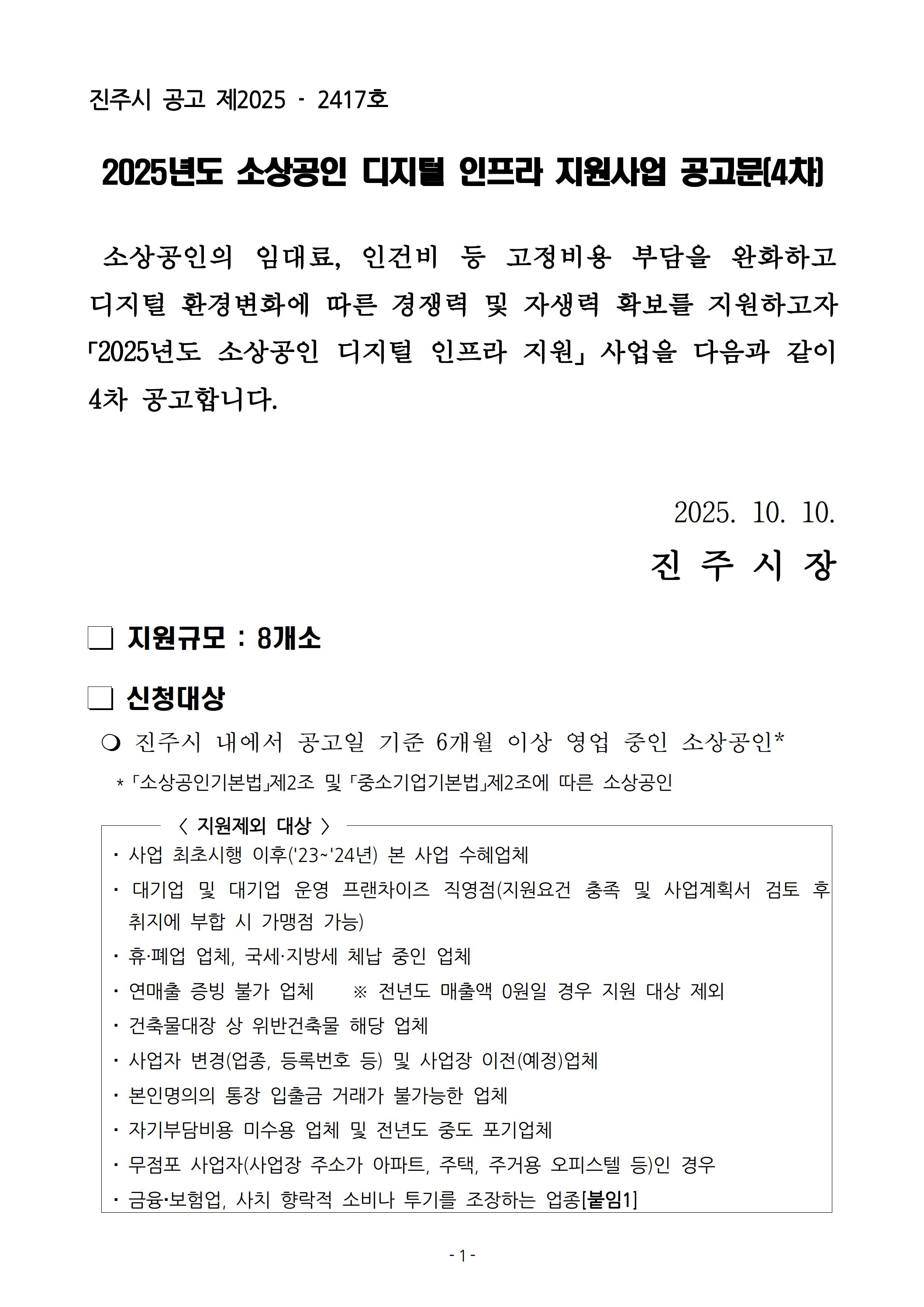- 2025년도 소상공인 디지털 인프라 지원 공고문4차.hwp (168.5K) 4회 다운로드 | DATE : 2025-10-15 07:21:00